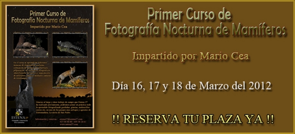 Como no podía ser de otra manera, y de la mano de Mario Cea, se va ha impartir el I Curso de Fotografía Nocturna de Mamíferos en la Comunidad Autónoma de Extremadura los próximo días 16,17 y 18 de Marzo de 2012 en la Sierra de San Pedro.